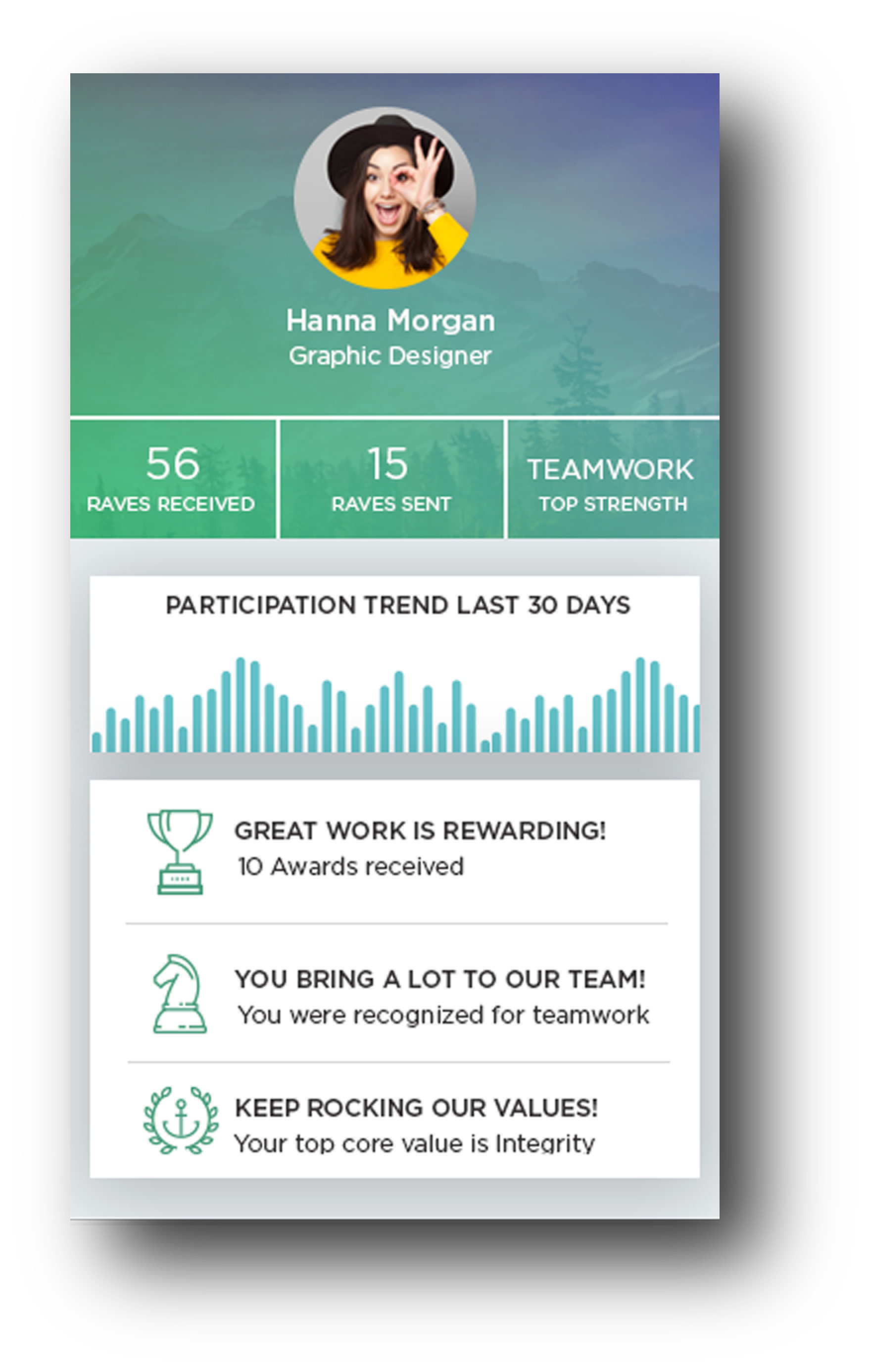Every recognition message automatically appears on your virtual recognition wall. Tied to your prized values, it’s like a drumbeat spreading news of positive actions happening - right now - in every corner of your organization.